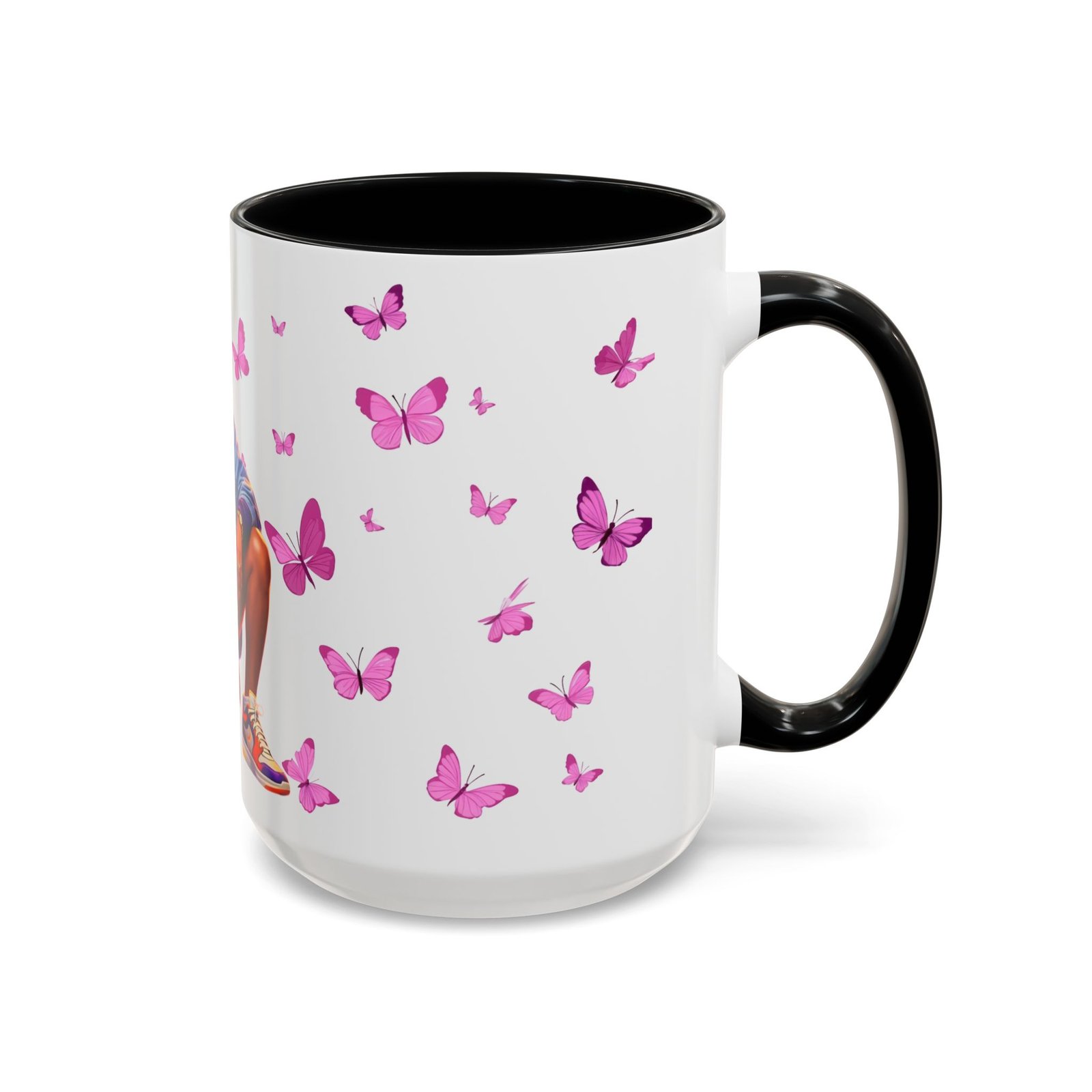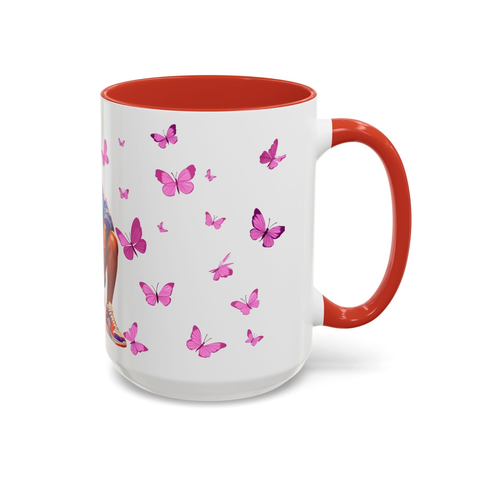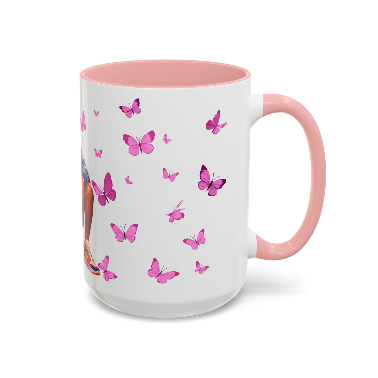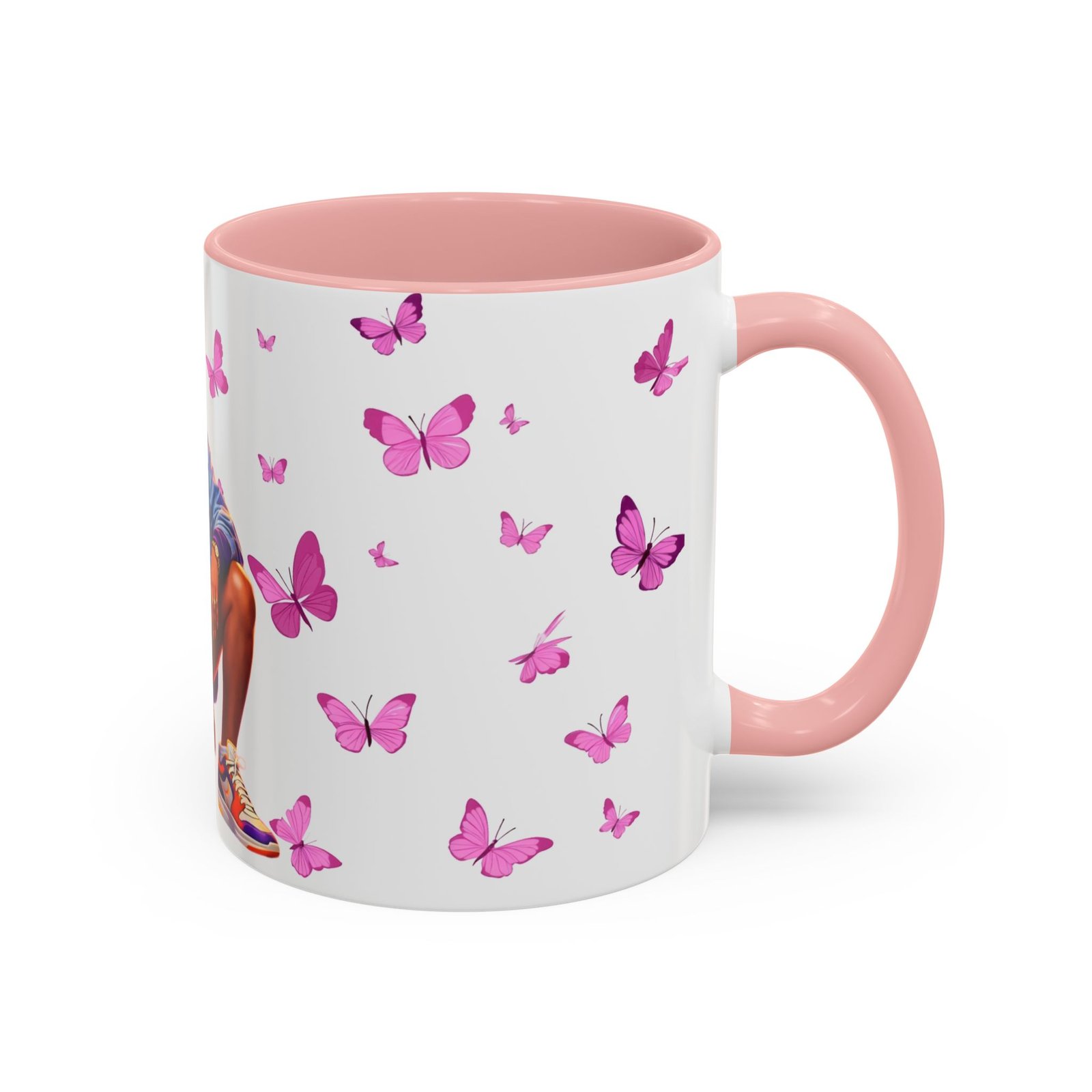 Girl with Pink Butterflies Mug | Accent Coffee Mug