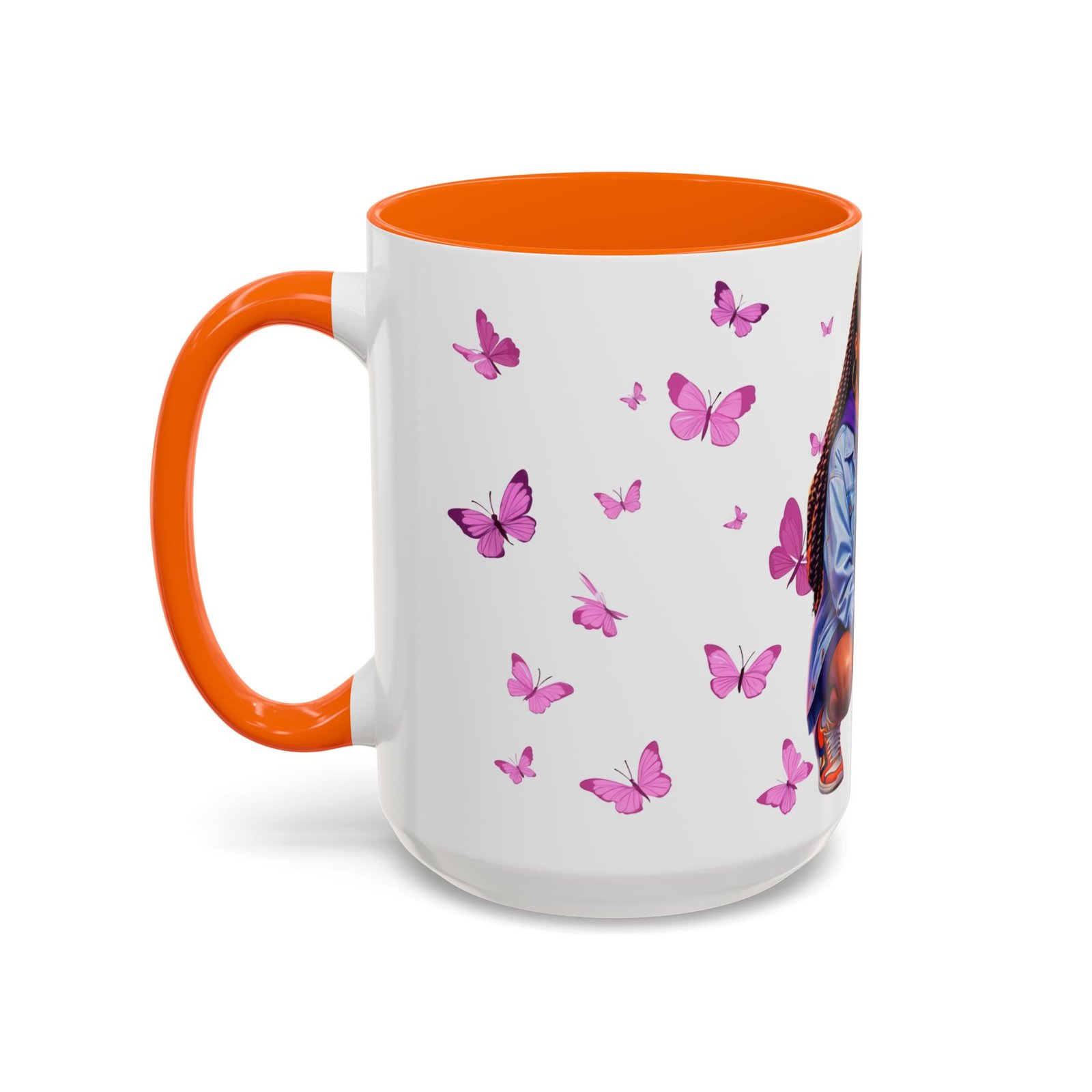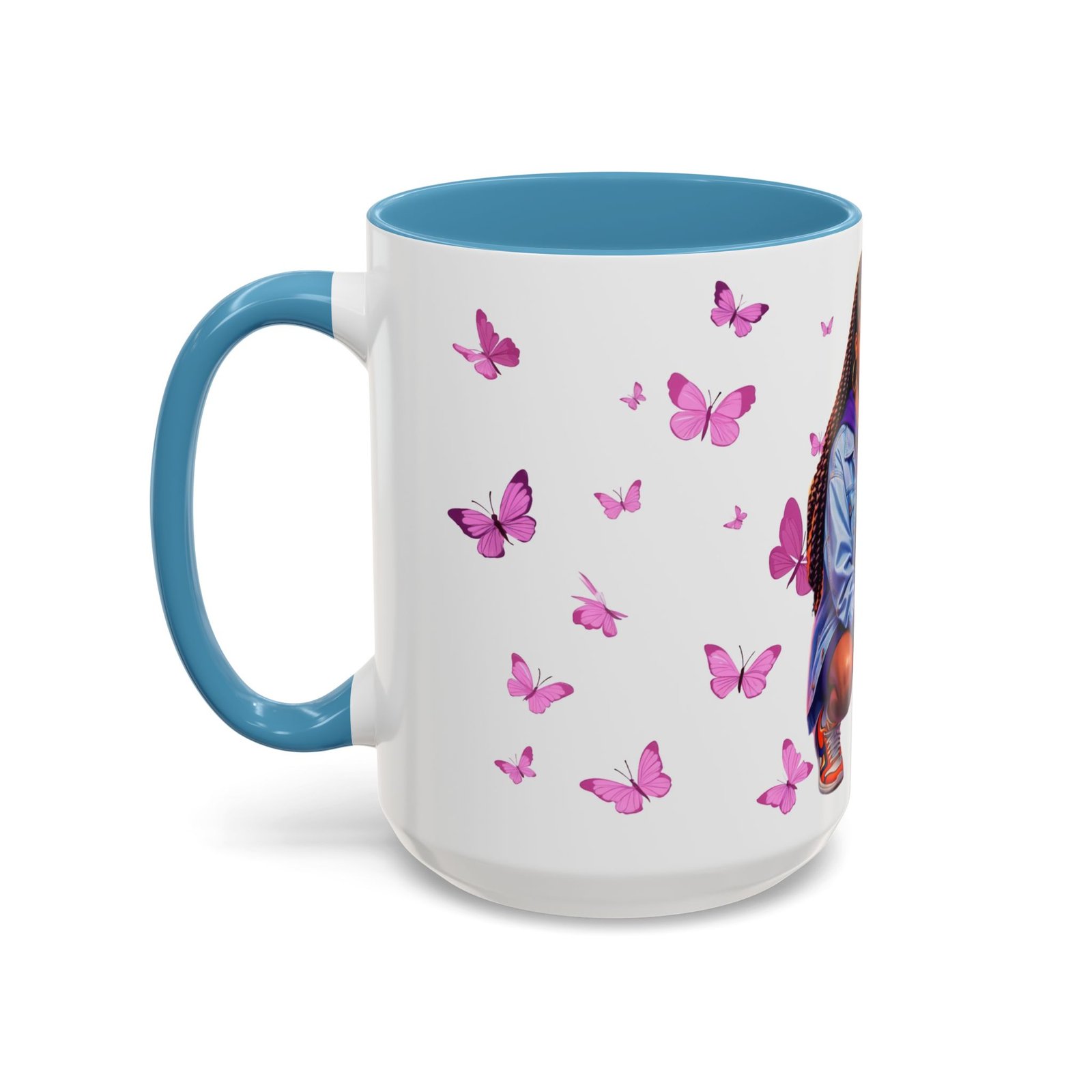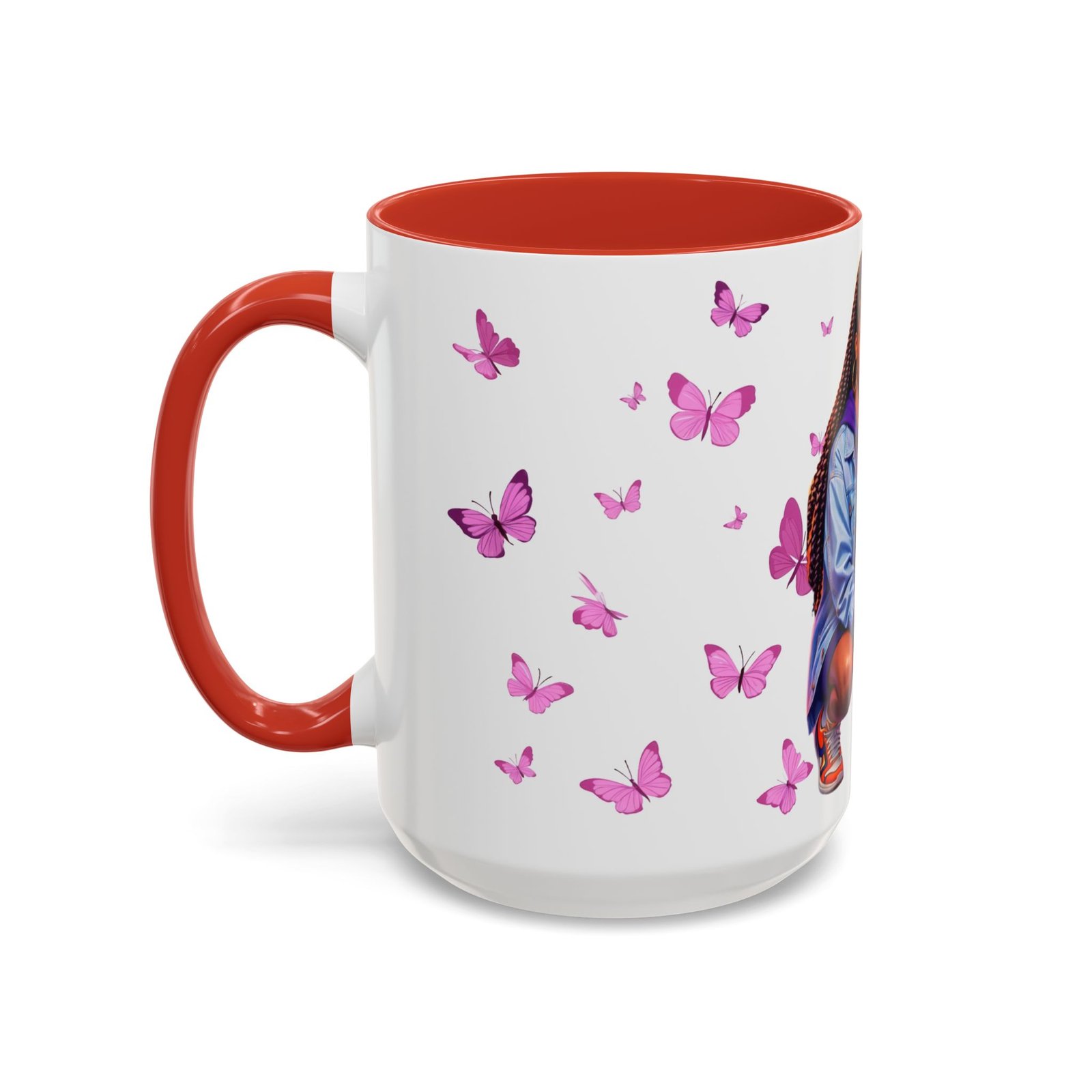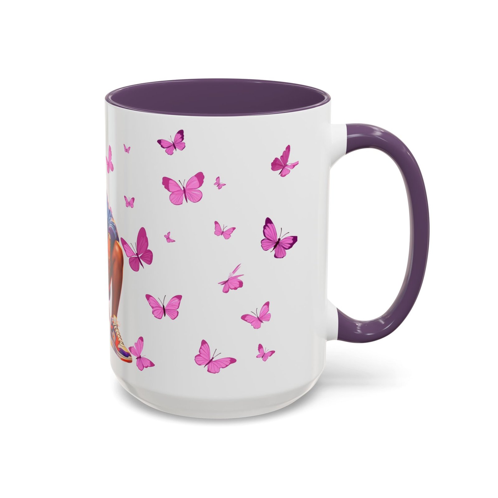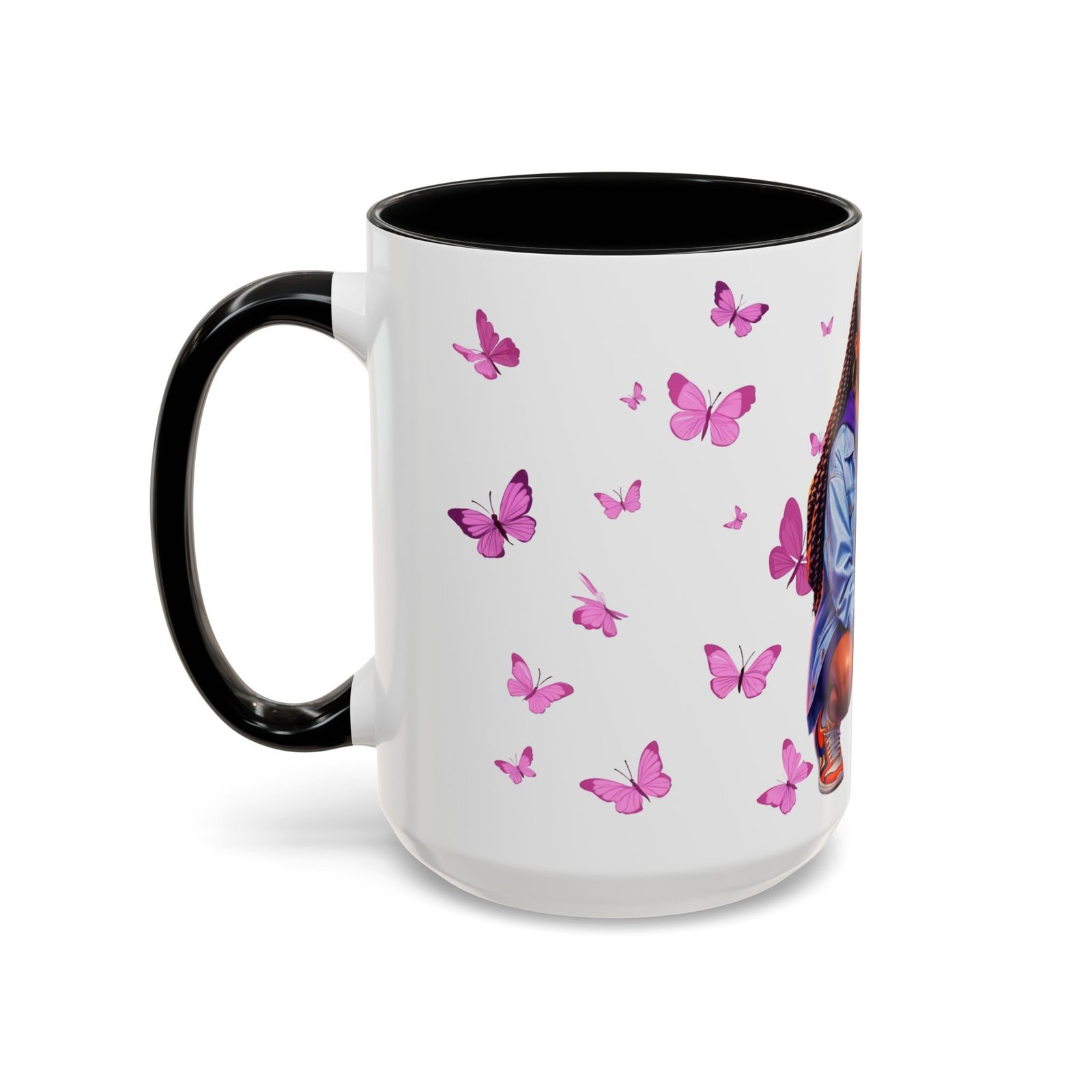 Girl with Pink Butterflies Mug | Accent Coffee Mug