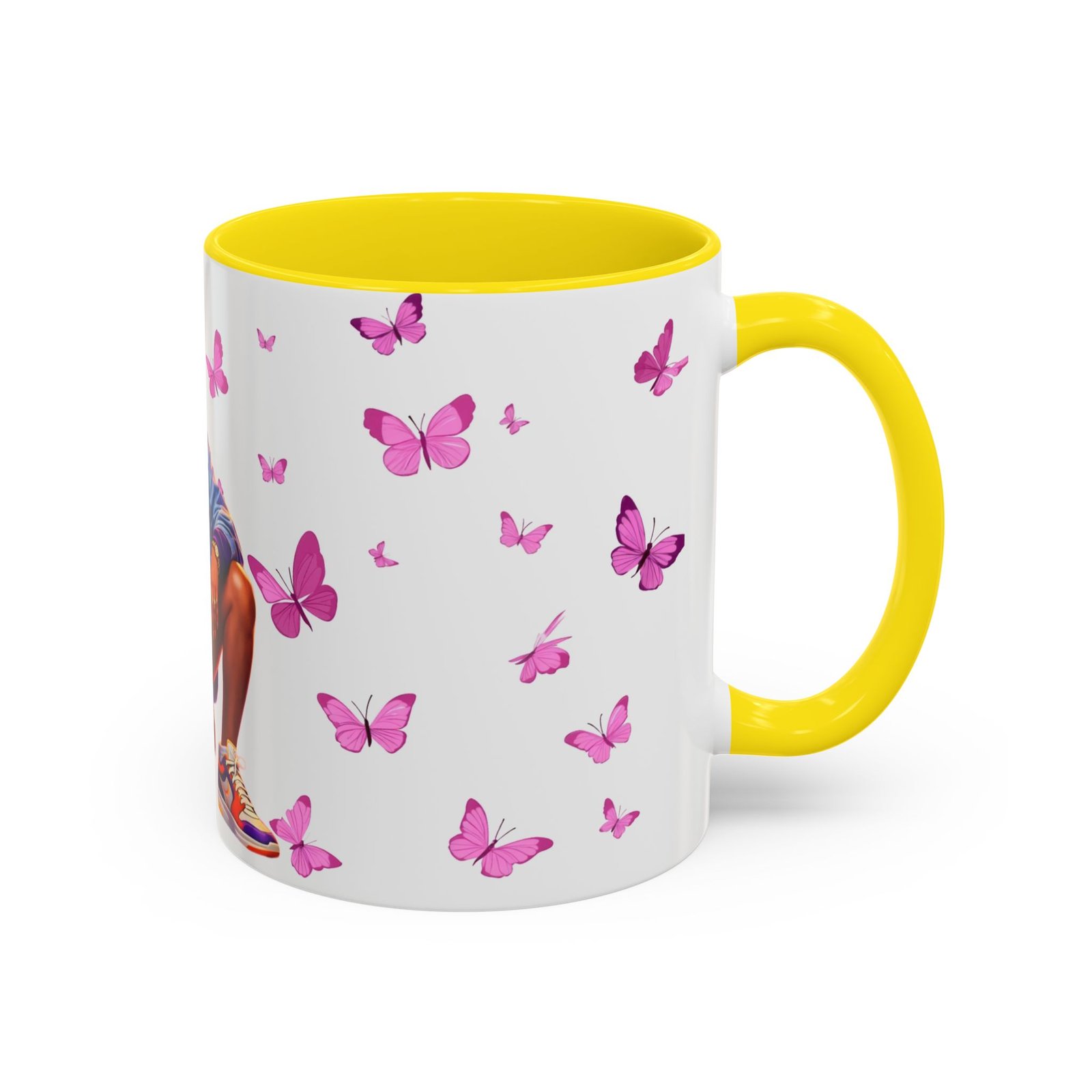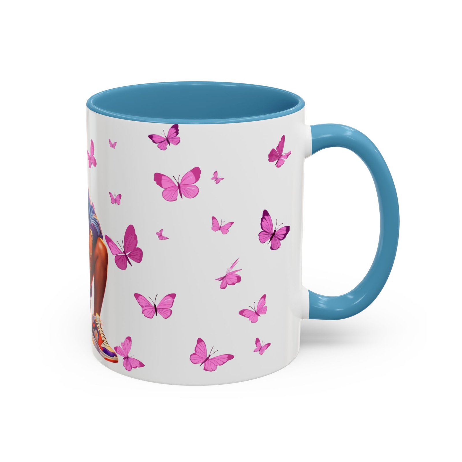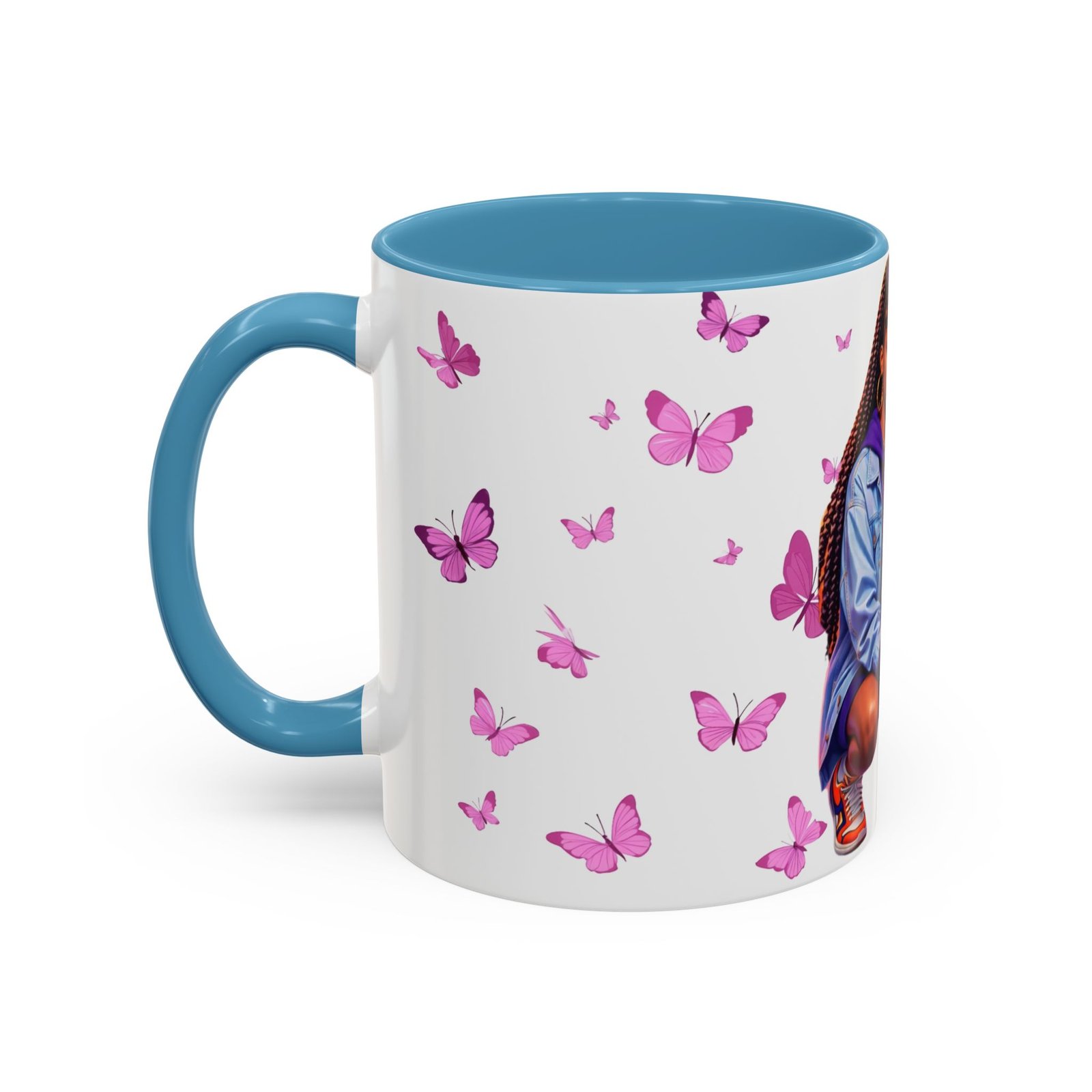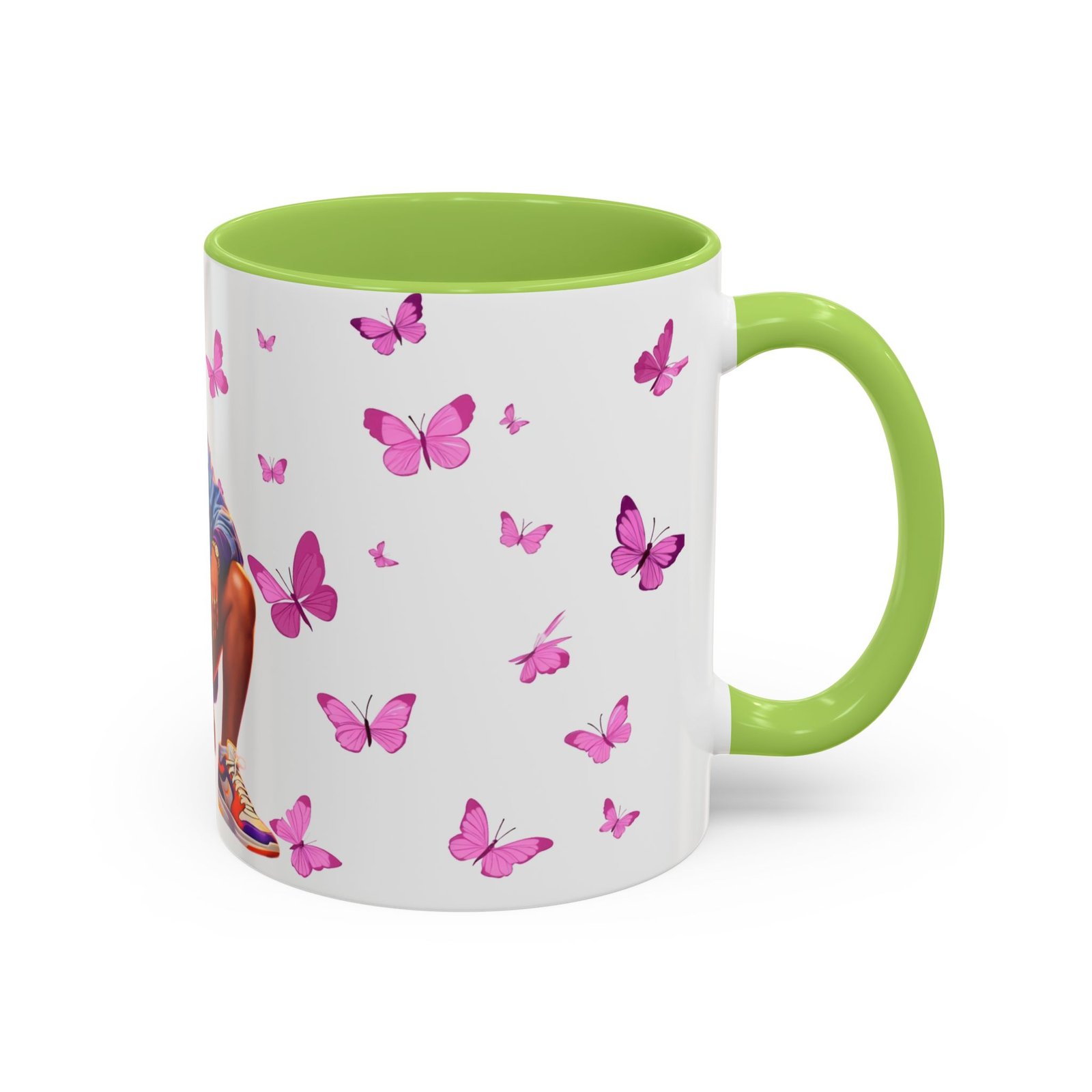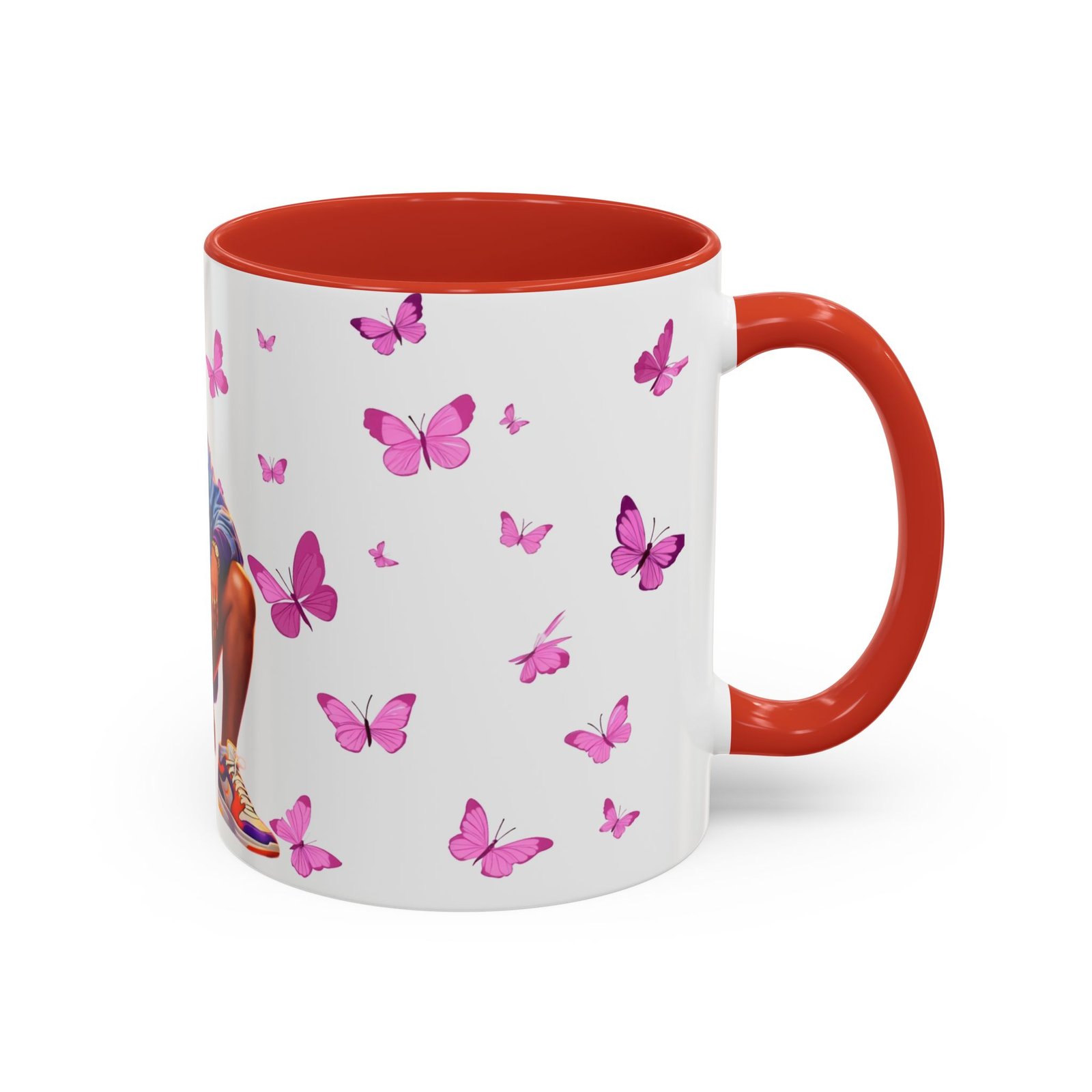 This ceramic accent mug is made for mornings that need a little attitude and a lot of self-expression. Featuring a bold, fashion-forward illustrated figure in streetwear, paired with soft pink butterflies, this design balances confidence with growth edge with grace. It’s playful without being loud, stylish without trying too hard.