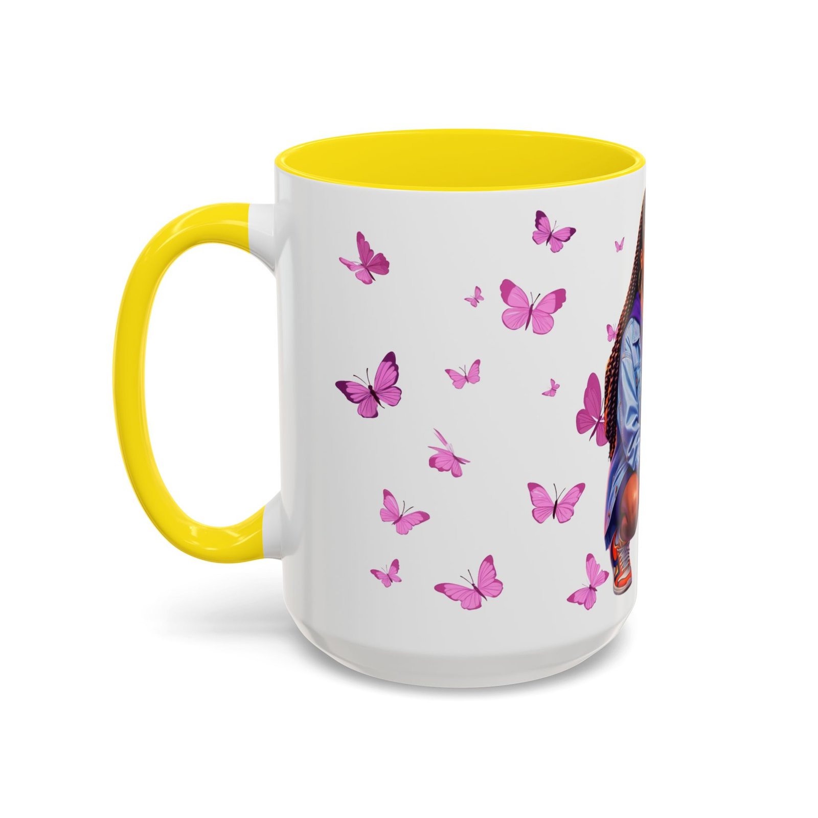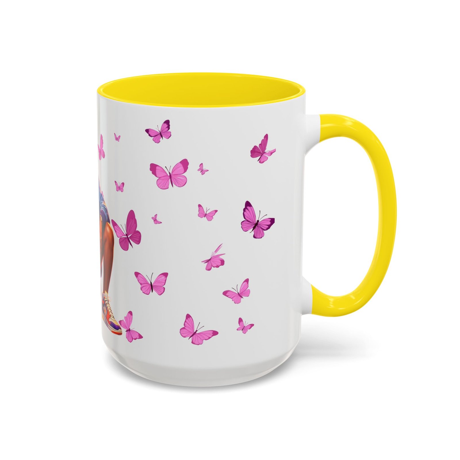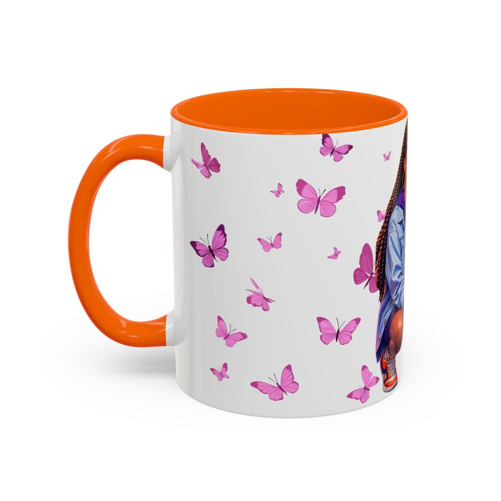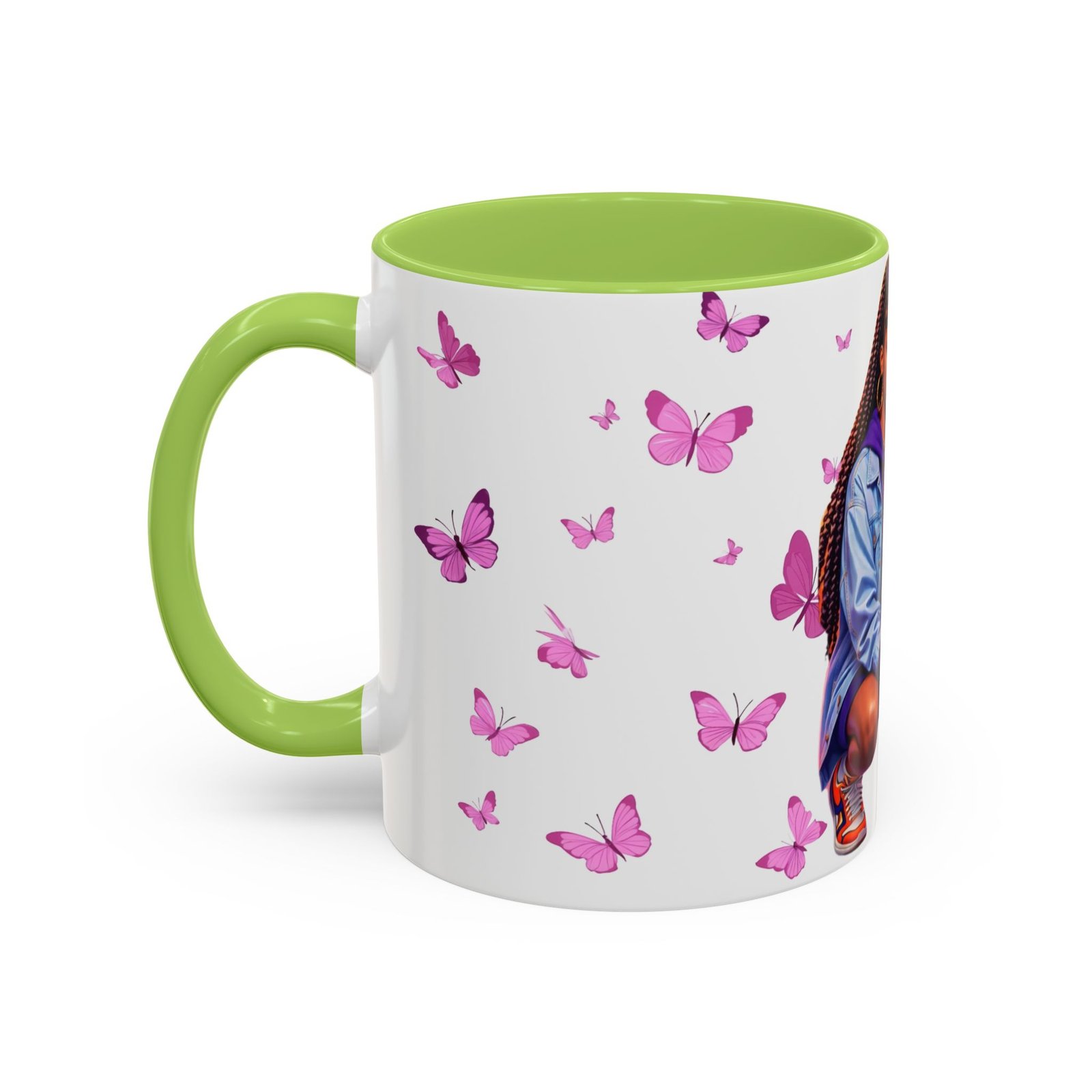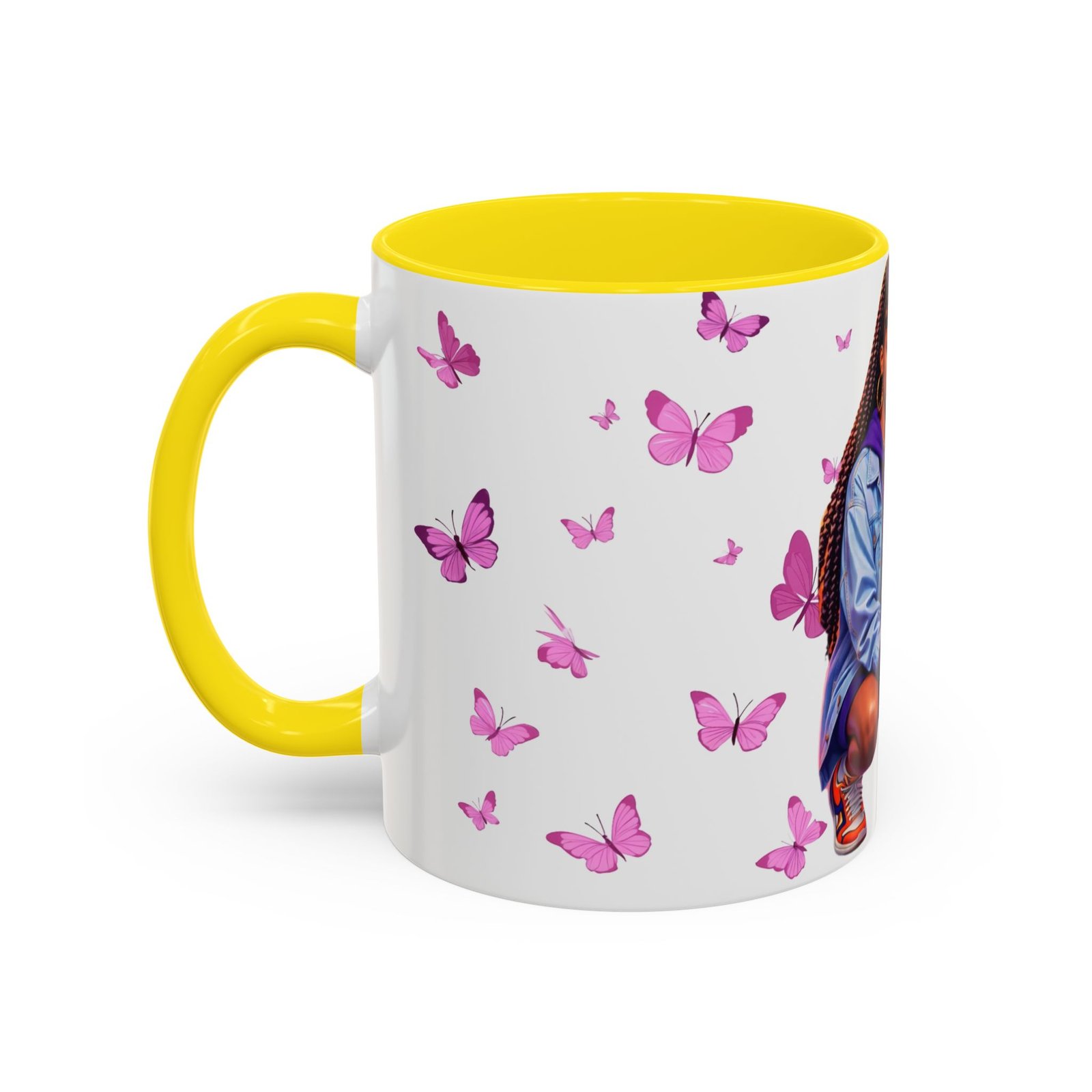 This ceramic accent mug is made for mornings that need a little attitude and a lot of self-expression. Featuring a bold, fashion-forward illustrated figure in streetwear, paired with soft pink butterflies, this design balances confidence with growth edge with grace. It’s playful without being loud, stylish without trying too hard.