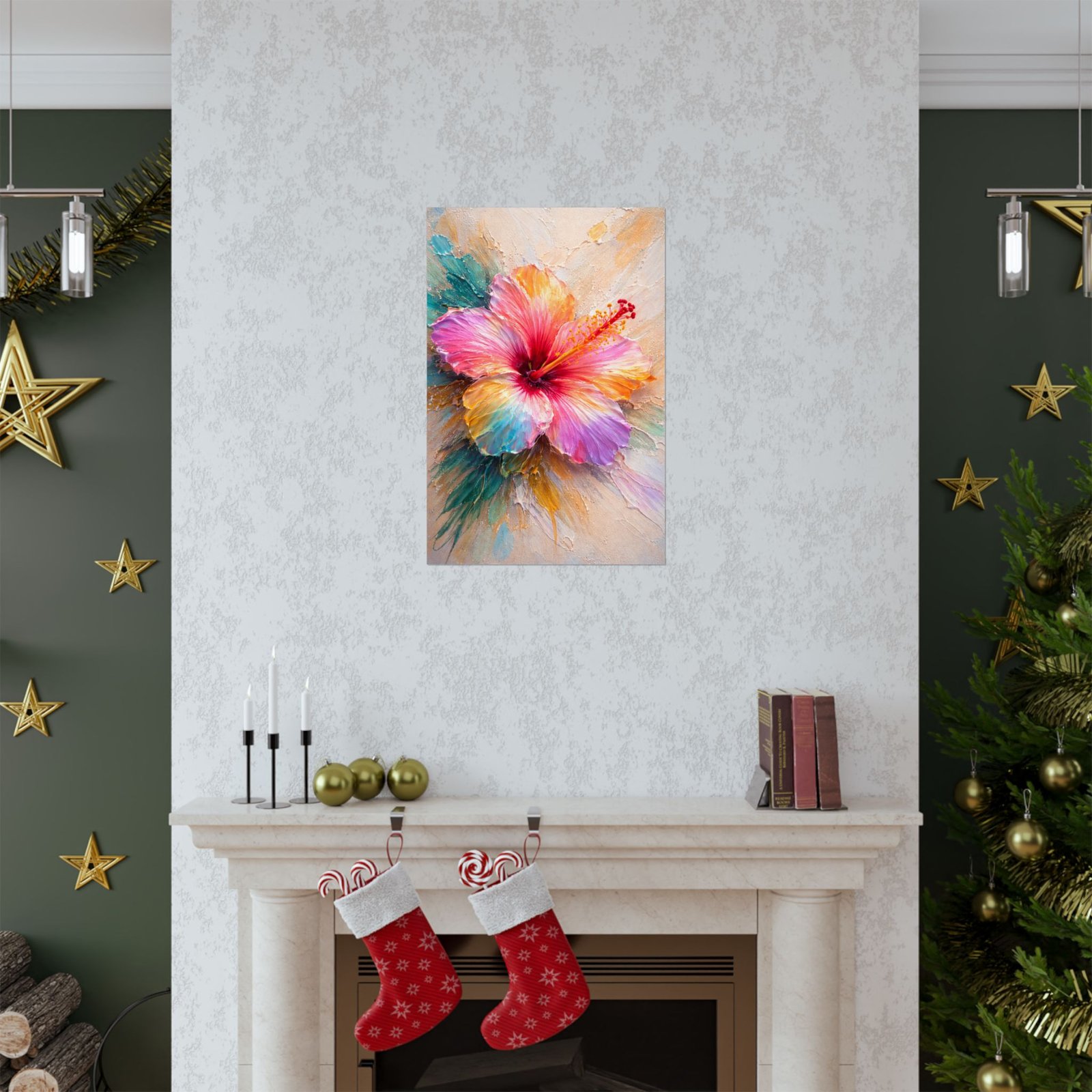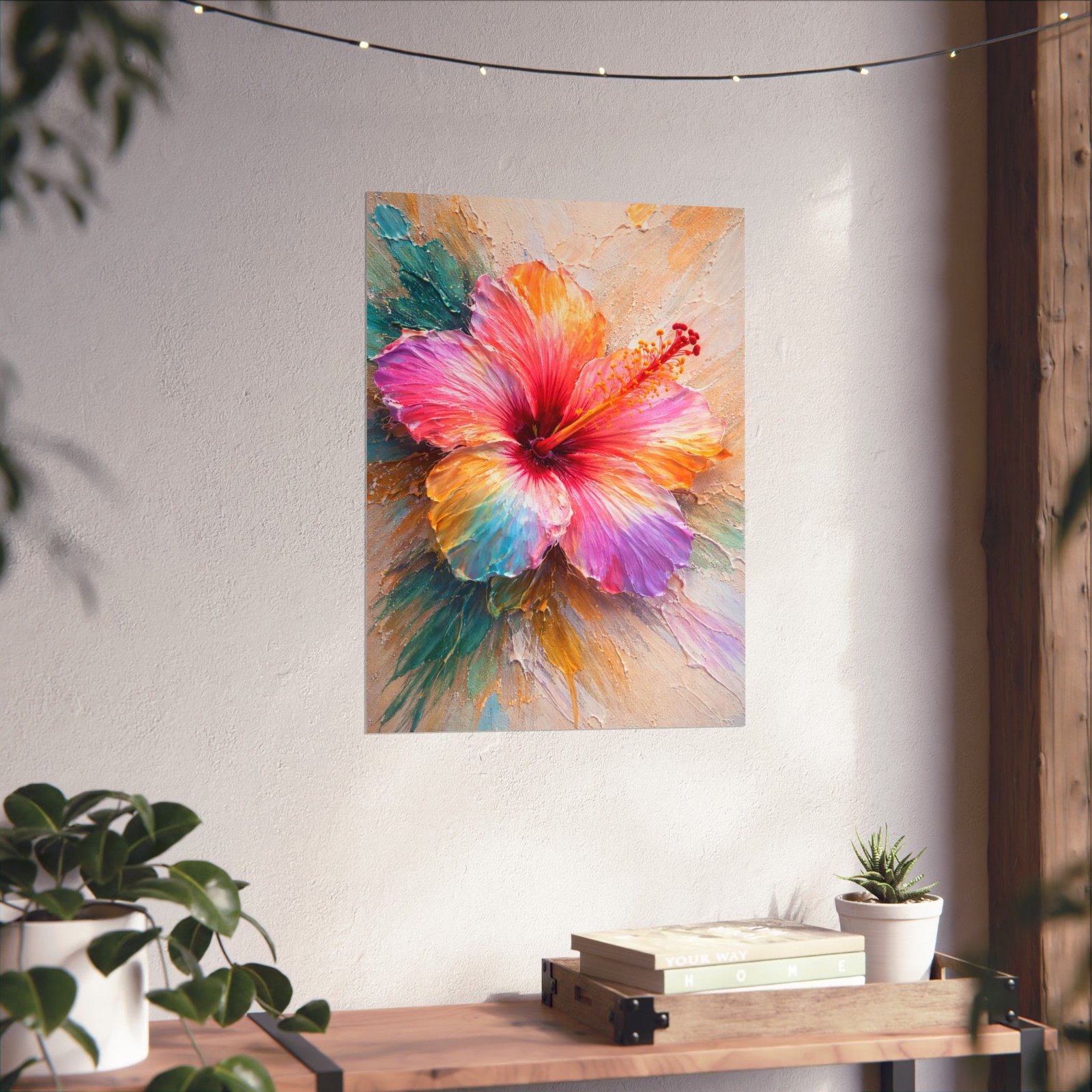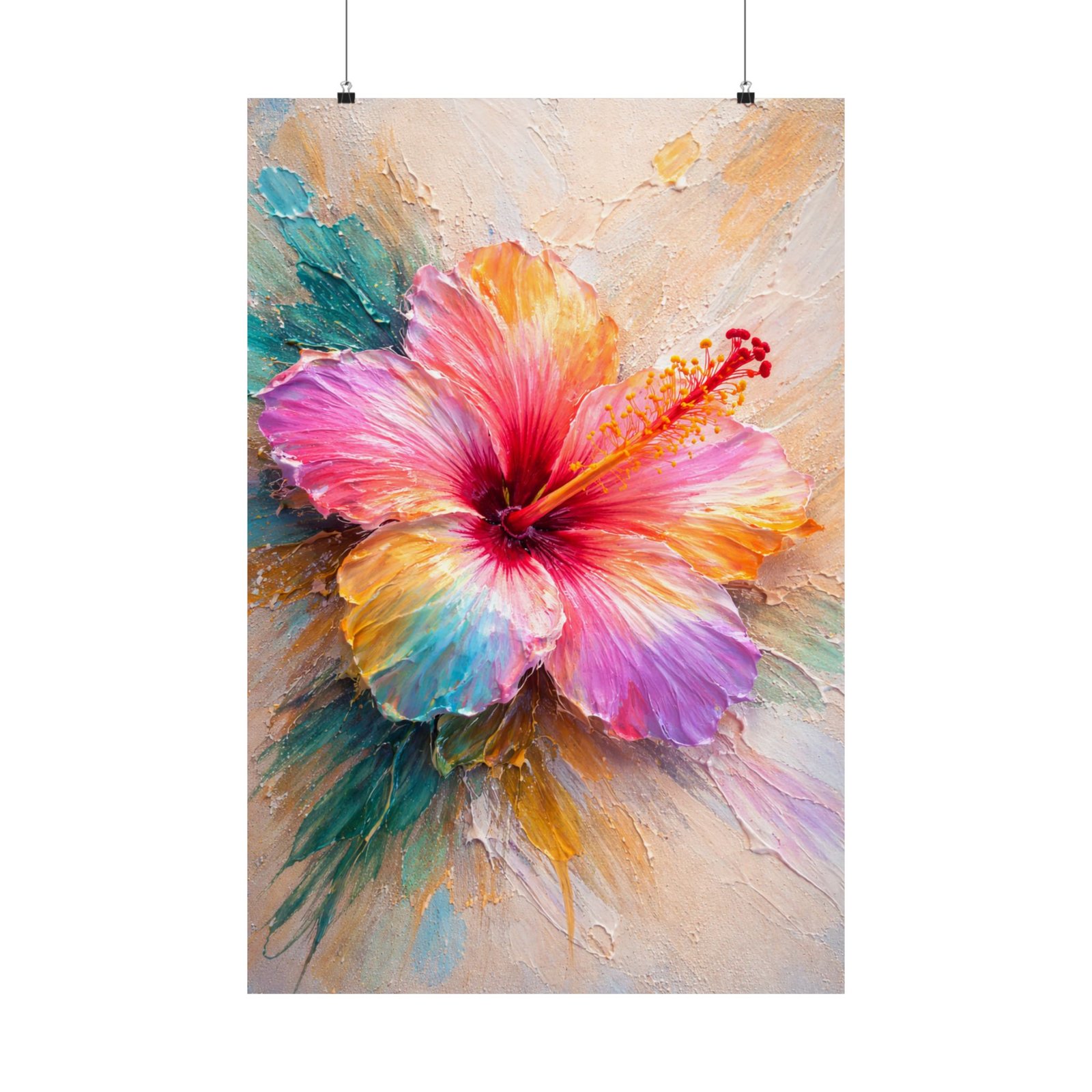 Same Bloom, Many Voices Wall Art Poster | Multicolor Hibiscus Impasto