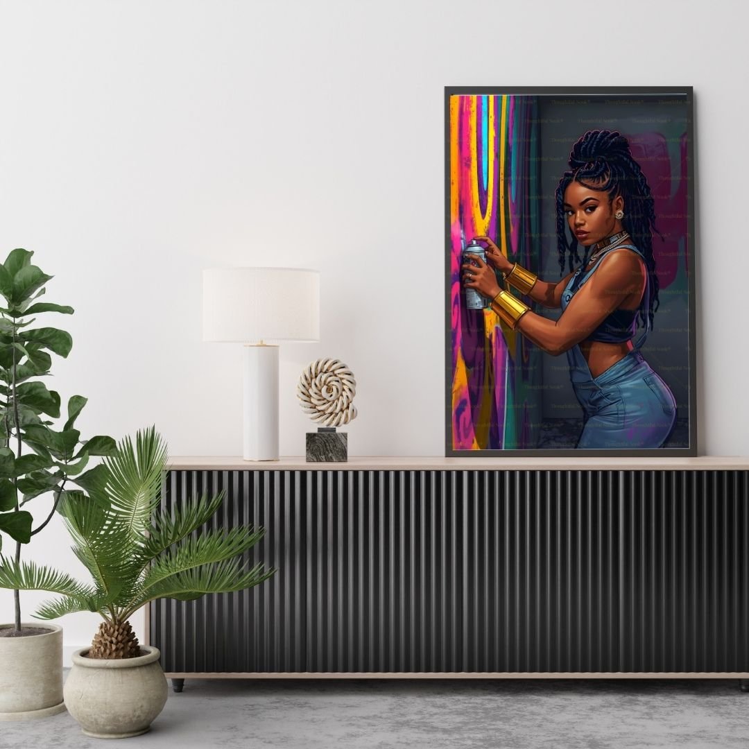 Perfect for modern homes, creative spaces, offices, or anyone who loves bold, contemporary African American art. This piece represents the intersection of Black culture, street art, and female empowerment.